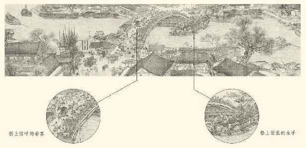 其实,无论是否使用罗盘,以及何时开始使用,宋的航运都很发达。在内陆江河中航行时,船长和水手们更是经验丰富驾轻就熟。不信请看《清明上河图》中,那航船在虹桥下放倒桅杆倾斜而过时,是何等的惊心动魄;岸边和桥上众多围观闲汉的惊叫之声,更是犹如耳闻。