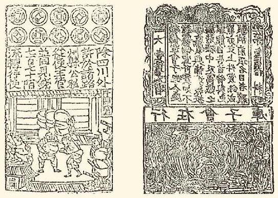 其实,交子在宋代的使用,尤其是在普通民众中的流通情况,还是一笔没弄清楚的糊涂账,因此也有人认为它并非货币,而是信用支票。但不管怎么说,交子、钱引和会子都与四大发明中的两项有关,是它们在金融领域的应用。(交子并非货币的观点,见(日本)小岛毅《中国思想与宗教的奔流》。)